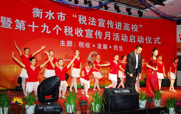 2010年4月1日上午,全國第19個稅收宣傳月到來之際,衡水市國、地稅局聯(lián)合來到衡水學(xué)院,拉開了稅收宣傳月暨稅收宣傳走進(jìn)高;顒拥男蚰弧