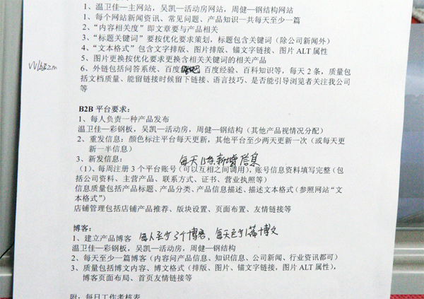 (6)拆分總體工作指標(biāo)到每一天,下圖是天地彩鋼網(wǎng)絡(luò)推廣部的每日指標(biāo),可參考: